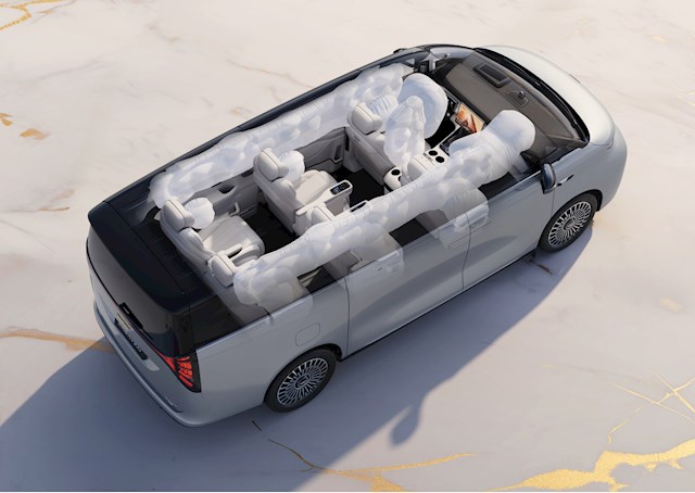 此外,车辆还将配备11个安全气囊 ,提供224L超大侧气帘,采用3.1米长的贯通式无断点设计,侧面碰撞时有效保护每一排乘客的头部。