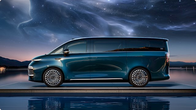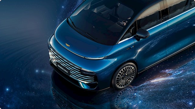 该车可以看作是吉利银河翼真L380的增程版,前脸配备星河长虹贯穿灯和专属24K曜金天马车标,并拥有大尺寸的镀铬中网,分体式大灯隐藏于波浪格栅中。